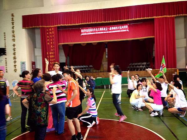 八點二十分,我們四個伙伴一行人在文苑國小大門下車,滿心期待地走進去,進去時看到了很多的略顯年長義工叔叔、阿姨們,當時的我們心裡都想著,是不是來錯場子啦!怎麼少見年輕人呢?!八點四十分,研習課程正式開始看到了救國團義工們都坐在準備好的椅子上,始業式正式開始,正當介紹完每位重要來賓之後,心裡還是滿心疑惑怎麼會有這麼多的叔叔阿姨呢?就在這時出現了一位重要級的團康帶動唱老師黃琇瑾老師。