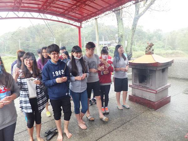 體驗活動前依循傳統,在插秧前先到土地公廟拜拜祈求本季風調雨順農作豐收。